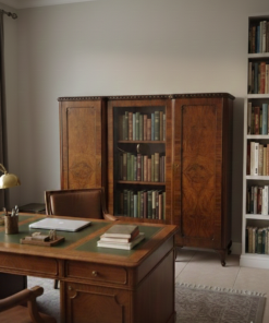 Προσθέστε μια νότα διαχρονικής κομψότητας στον χώρο σας με αυτή την εντυπωσιακή χειροποίητη βιτρίνα, κατασκευασμένη από υψηλής ποιότητας ξύλο καρυδιάς. Το έπιπλο διακρίνεται για τα μοναδικά «νερά» του καπλαμά (burr walnut) που δημιουργούν πανέμορφα συμμετρικά μοτίβα στις πόρτες.