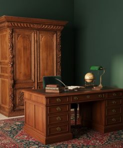 Πρόκειται για μια αντίκα ντουλάπα σε στυλ Αναγέννησης (Renaissance Style) ή Μπαρόκ, με πλούσιο σκάλισμα που την κάνει να μοιάζει με έργο τέχνης. Μια μοναδική, επιβλητική ντουλάπα υψηλής αισθητικής που αποπνέει την αίγλη των παλαιών αρχοντικών. Κατασκευασμένη από μασίφ ξύλο καρυδιά, αποτελεί ένα σπάνιο δείγμα λεπτομερούς ξυλογλυπτικής.