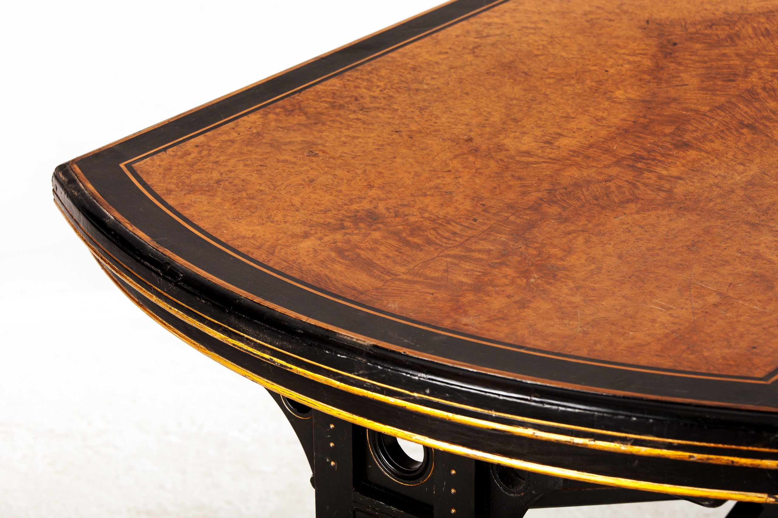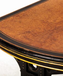 Napoleon III style” is the name that is commonly given to a 19th-century style of Renaissance Revival architecture in France, particularly in Paris. It is a sub-style of Second Empire architecture, a term also used elsewhere in the world for this style. It flourished during the Second French Empire and is characterized by its eclecticism because of the mix of decorative elements from the past. This table was purchased from a woman who was part of the resistance forces to the German occupation in 1940. Because of her efforts, she received a number of gifts, among them this piece, which dates back to 1880.